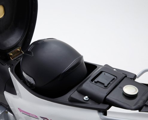 • Equipamiento Full: Incluye llantas de aleación, balizas, asiento con doble costura, baúl bajo asiento porta casco y batería de gel libre de mantenimiento.