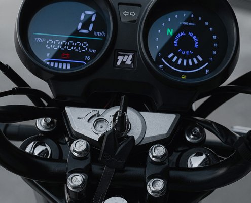 - Tablero: Completamente digital con indicador de marchas, velocidad, y nivel de combustible.